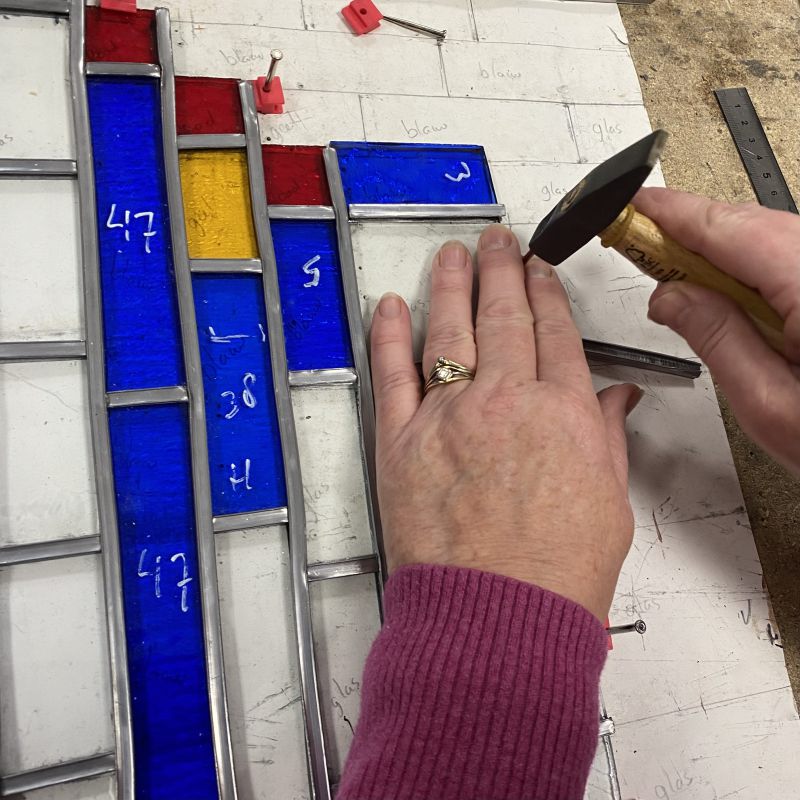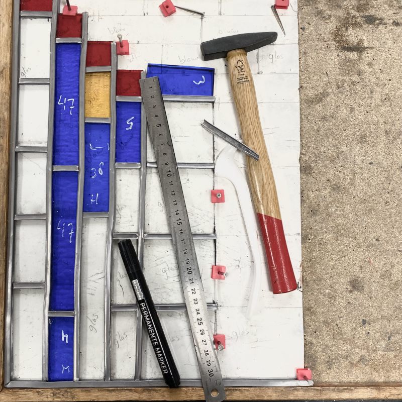 In het begin krijg je uitleg over het gebruik van gereedschappen en materialen. Verder worden de basistechnieken maatvoering, glassnijden, het zetten in lood, verwerken van staallood, solderen en kitten aangeleerd, In de cursus worden drie werkstukken gemaakt, waarbij het materiaal voor het eerste werkstuk door De Helling wordt verstrekt.