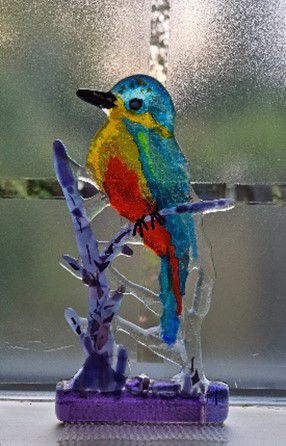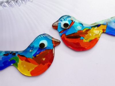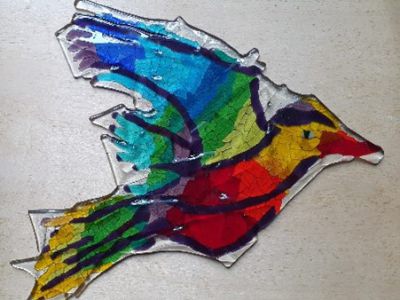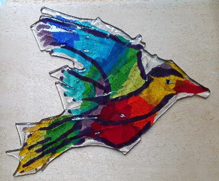 Het ontwerpen, tekenen, snijden en vormgeven, vooral in kleur, vormt de basis. Als de vogel klaar is wordt hij 2x gestookt in onze glasoven. Je kunt je werk dus pas een week later weer ophalen, dan kan de vogel uitvliegen!