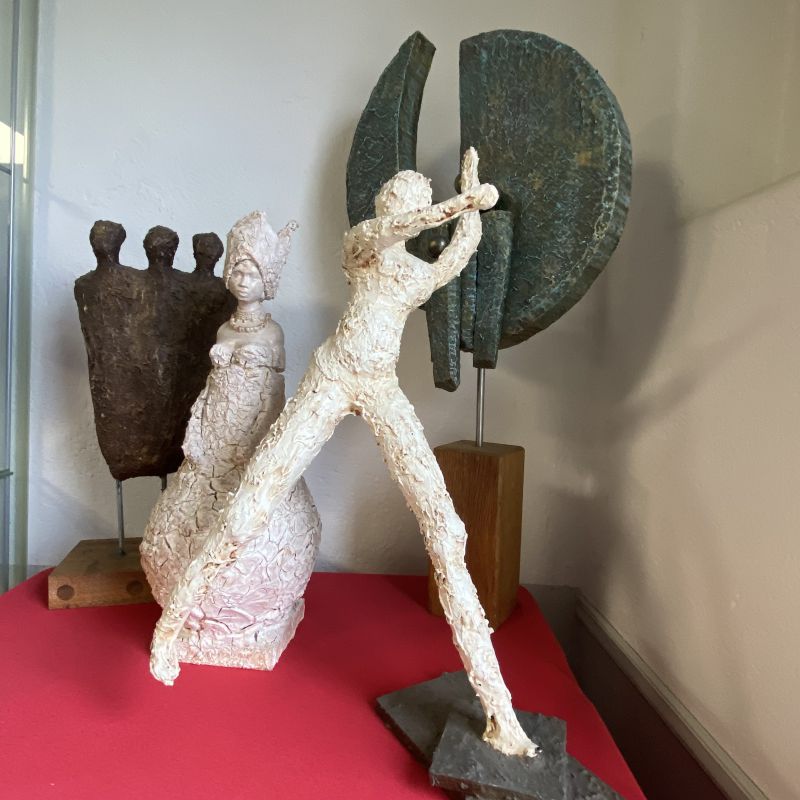Je kunt o.a. werken met textielverharders, een product ontworpen door en in gebruik bij beeldend kunstenaars. Het materiaal leent zich perfect voor het vervaardigen van de meest uiteenlopende (kunst)werken. Eerst vorm je een basisconstructie van gaas, styropor, of van hout. Vervolgens geef je het verder vorm met textiel gedrenkt in textielverharder. Textielverharder is te combineren met heel veel andere materialen, zoals o.a. zijde, ongeverfd leer, steen, beton, gips, aardewerk, zelfhardende klei, papier, op canvas schildersdoek etc.