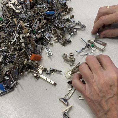 Henk Jansen, Jos van Workum en Hans … repareren oude naaimachines, die via Vraag en Aanbod International uiteindelijk terechtkomen in Afrika. Daar worden de machines verstrekt aan startende ondernemers, vaak eenman-bedrijven, die met deze hulp een minimum bestaan proberen op te bouwen. Op deze wijze werkt De Helling mee aan de armoede bestrijding aldaar.