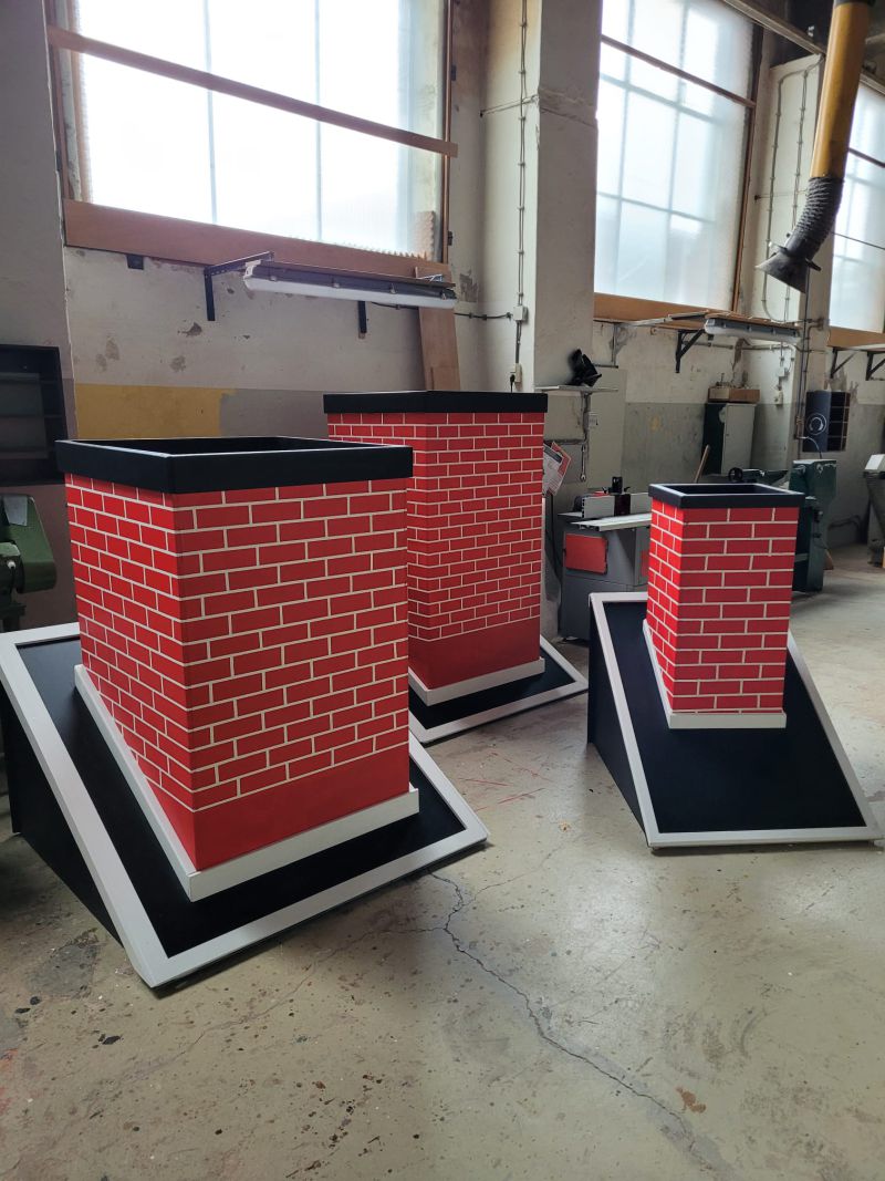Een team vrijwilligers van De Helling met o.a. Mark Felkin, Astrid Luites, Jan Jacobs, Gert Pasman en vele anderen, maakten nieuwe schoorstenen, dakranden, een schatkist en nog veel meer.