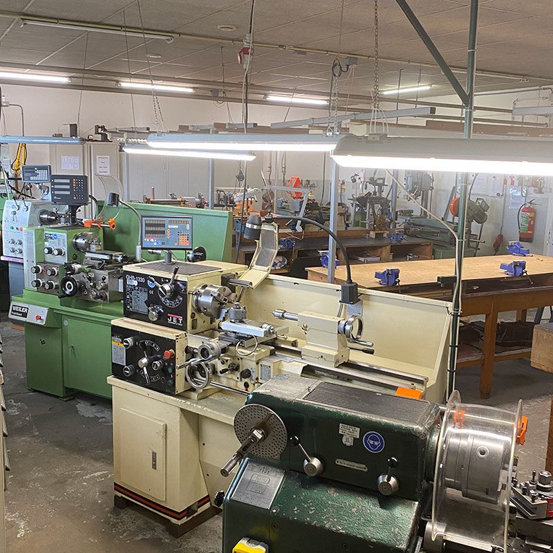 Er staan boor/freesmachines, draaibanken, kolomboormachines, poets/polijstmachine, slijpmachine, soldeertafel, straalcabine, zaagmachine, gereedschapskasten, verdeelkop, platenwals, zetbank, uithoeker, tandwiel freesmachine, gereedschapskasten met div spantangen, machineklem, zandstraalmachine en diverse handgereedschappen.