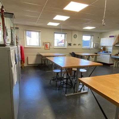 Het atelier beschikt over 12 werkplekken.