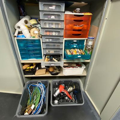 Alle noodzakelijke gereedschappen (scharen, potloden, kwasten etc) en hulpmiddelen zijn ruimschoots aanwezig.